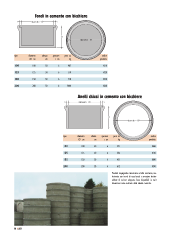 Fondi in cemento con bicchiere s diametro - Ø s H s diametro - Ø s tipo diametro altezza spessore peso ca. codice Ø cm cm s cm kg prodotto 100 100 50 6 407 1010 125 125 50 6 514 1020 150 150 50 6 718 1030 200 200 50 6 1’004 1040 Anelli chiusi in cemento con bicchiere s diametro - Ø s H s diametro - Ø s tipo diametro altezza spessore peso ca. codice Ø cm cm s cm kg prodotto 100 100 50 6 291 1060 125 125 50 6 346 1070 150 150 50 6 431 1080 200 200 50 6 612 1090 Prodotti impiegando calcestruzzo ad alta resistenza, con- fezionato con inerti di cava lavati e armature elettro- saldate di sezione adeguata. Sono disponibili in varie dimensioni come indicato dalle tabelle tecniche. 18