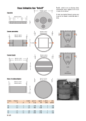 Fosse biologiche tipo “Imhoff” Manufatti costruiti in serie con calcestruzzo vibrato, convenientemente armato e aggiunta di inerti di cava diametro esterno e cemento ad alta resistenza. Coperchio Gli schemi sotto riprodotti, illustrano la corretta messa diametro esterno in opera dei vari elementi a seconda delle altezze ri- a b c chieste. 18 Camera anaerobica diametro esterno s diametro interno s camera diametro esterno entrata anaerobica uscita s diametro interno s camera fanghi entrata uscita 50 entrata uscita vasca sedimentazione Camera fanghi diametro esterno s diametro interno s entrata camera uscita diametro esterno anaerobica diametro interno camera fanghi 50 anello vasca sedimentazione diametro esterno Vasca di sedimentazione diametro interno diametro esterno diametro interno 50 s Ø interno Ø esterno s H-totale peso tot. capacità n. persone codice cm cm cm cm ca. kg litri servite prodotto 100 110 5 168 1’250 900 4 1290 100 110 5 218 1’480 1’200 7 1300 125 135 10 168 1’890 1’600 7 1315 125 135 10 218 2’230 2’140 11 1320 22