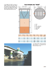 Le fosse biologiche tipo “Imhoff” sono realizzate con Fosse biologiche tipo “Imhoff” l’impiego di calcestruzzo vibrato, armato conveniente- mente composto da cemento ad alta resistenza e inerti s diametro esterno s s diametro esterno s diametro interno di cava lavati. Le fosse biologiche “Imhoff” costituiscono diametro interno degli autentici impianti di depurazione per la separa- D zione dei sedimenti solidi nelle acque di scarico. A 1 2 H B 1 = entrata 2 = uscita A = vasca di sedimentazione B = vasca di digestione C = deposito fanghi D = coperchio C Ø interno Ø esterno H- totale spessore capacità peso ca. persone codice cm cm cm s cm litri kg servite prodotto 150 162 218 6 2’600 3’179 13 1340 150 162 270 6 3’460 3’610 18 1350 200 212 218 6 4’400 4’420 23 1360 200 212 318 6 6’600 6’700 42 1370 Le fosse biologiche “Imhoff” costituiscono degli autentici impianti di depurazione per la separazione dei sedi- menti solidi nelle acque di scarico. 23